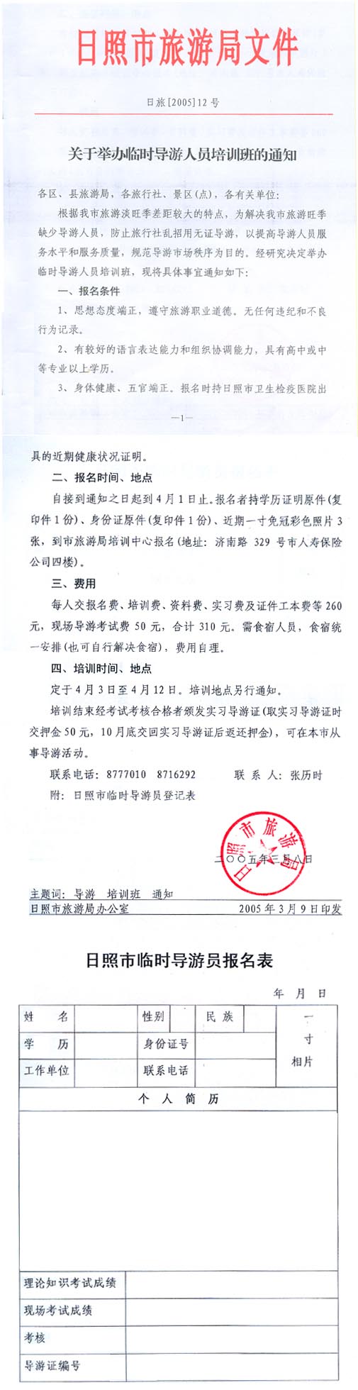 关于举办临时导游人员培训的通知(2005年03月10日)