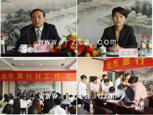 日照市旅游局局长柏峰、副局长张荣英出席此次会议并分别作重要指示,会议由行业管理科科长唐琴主持,市旅游质量监督管理所负责人陈常宝传达了《关于开展创建“诚信旅行社”活动的通知及实施方案》。
