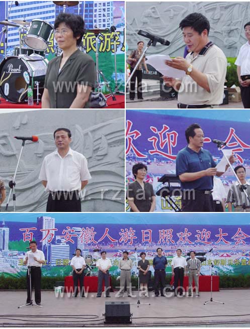 盛夏六月三伏天,酷暑炎热日照爽。7月的日照迎来了“百万安徽人游日照”的首批安徽游客。16日下午,日照万平口生态公园演艺广场鼓乐齐鸣,彩带飞舞,“百万安徽人游日照”欢迎大会隆重举行。日照市人大副主任蔡建华、日照市副市长张喜忱、日照市政协副主席王和田、日照市旅游局副局长王立新、合肥市旅游局副局长陈安达及安徽省旅行社协会、日照市旅行社分会的负责同志出席参加大会。欢迎大会由日照市旅游局局长柏峰主持。张喜忱副市长、陈安达副局长分别致辞。