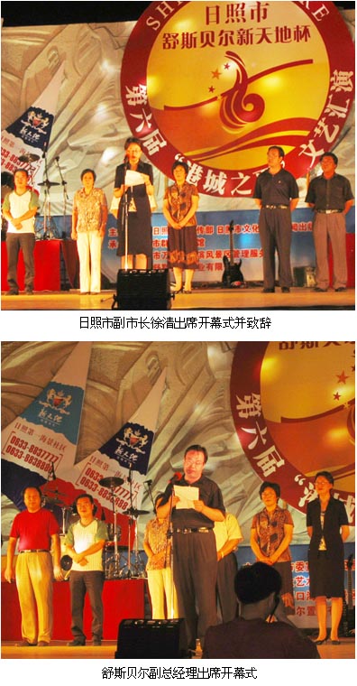首场演出在市群星艺术团的原创歌曲——本次“港城之夏”的主题歌《相聚舒斯贝尔》中开始。接下来的15个包括原创歌曲、流行歌曲、网络歌曲、摇滚歌曲以及相声、京剧、舞蹈、萨克斯独奏等在内的节目个个精彩,演员们的表演一会把观众带到如诗如画的梦幻中,一会把观众带到轻松热烈的摇滚乐中,一会又把他们逗得捧腹大笑。