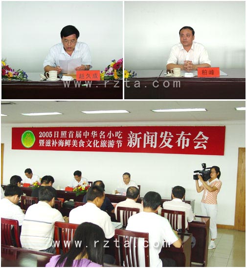 8月15日在市政府举行了“2005年首届中华名小吃暨滋补海鲜美食文化旅游节新闻发布会”。日照市旅游局、东港区政府、日照烹饪协会、市建委、市广电局、市公安局、市卫生局、市工商局、市外宣办、日照日报社的有关领导出席了会议。在会上市旅游局局长柏峰宣读了山东省烹饪协会贺词。日照市人民政府副秘书长赵久成同志做了重要讲话。