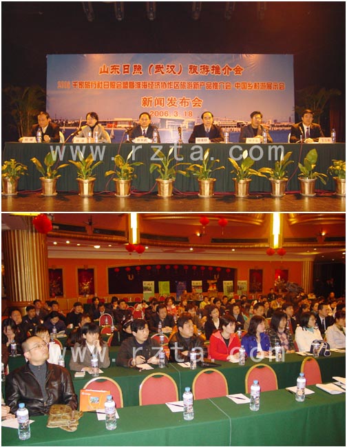 3月18日上午,中国优秀旅游城市日照旅游推介会暨“2006千家旅行社(日照)会盟,淮海经济协作区旅游产品推介会,中国乡村游展示会”新闻发布会在武汉东方大酒店隆重举行。 日照市委副书记、市旅工委主任徐学武主持会议,日照市政府副市长徐清发表了热情洋溢的讲话,武汉市旅游局纪检组长徐绪群致辞。徐清副市长首先介绍了日照发展旅游业的三大优势:一是有丰富的旅游资源优势,二是有发达的交通优势,三是有良好的区位优势。以上三大优势决定了旅游业在日照经济发展中的重要地位。日照市旅游局长柏峰重点对日照的旅游进行了推介。以“打响区域旅游市场开发的‘淮海战役’,唱好旅游媒体合作的‘经典大戏’”为主题,日照市旅游局副局长王立新介绍了千家旅行社(日照)会盟的筹备情况。 不完全统计,参与本次推介会的旅行社有100多家,新闻媒体有20多家。通过推介会武汉的旅游界和媒体表达了对日照的向往和渴望,都期盼着“走出火炉,奔向清凉”,希望能到日照观海听涛,游山览胜,体验日照人民的朴实和勤劳。