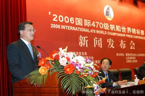 2006年国际470级帆船世界锦标赛是首次在中国举行,这既是山东的光荣,更是山东的责任。我们将与国家体育总局水上运动管理中心、日照市人民政府通力合作,精心筹备,精心实施,把赛事活动办成有特色、高水平的水上运动盛会,为我国水上运动项目的发展做出积极贡献。