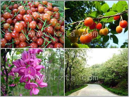 槐花无处不在,无处不香。而真正花的涌,花的浪、花的海洋,花的世界;叫人豁然开朗,心如飞翔,宠辱皆忘,游客们无不为九仙山槐花盛开和樱桃满枝的自然美景而折服。 五月,走进九仙山看到团团簇簇的雪白的槐花,高高低低的开着,让你感觉到了世外桃源。和煦的阳光照在开满槐花的高树上、照在樱桃缀满枝头的樱桃树上。成千上万只蜜蜂的歌唱,汇成悦耳的乐章,让人感到空气里充满了惬意的清爽。被称为春头第一果的樱桃也熟满枝头,为游客提供了美味水果。 九仙山这个世外桃园还吸引了许多省内外的游客到来,游客在赏花观景时还可以采摘香甜的樱桃果吃。这漫山的槐花和红满枝头的樱桃让游客流连忘返。 养蜂帐前,工人正在摇蜜;这就是“槐花蜜”,让你品尝真正的绿色食品,甘甜透心,美味至极。绿荫下,远望山岭,一层层槐花通向天边,大自然的恩赐,九仙山的美景。