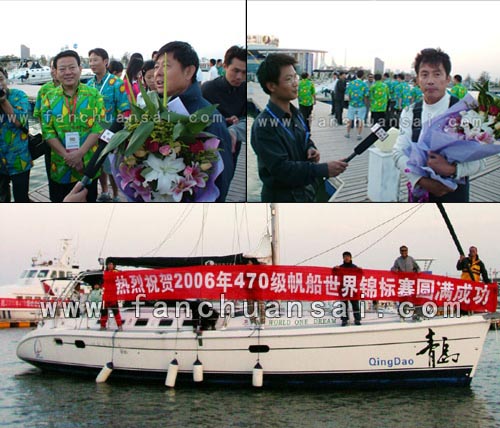 470世界帆船锦标赛开赛以来,日照备受关注,9月9日下午,“青岛号”帆船专程从青岛赶来对470级世帆赛在日照的举办表示祝贺。日照市体育局局长赵文胜、中国帆船帆板运动协会副秘书长周长城等领导在世帆赛基地浮动码头欢迎来自青岛的客人。 “青岛号”船长郭川说:“特别高兴来到日照,这也不是我第一次来日照,但是去年来日照和今年来日照有很大的不一样,其中的变化使我感受到日照为举办470帆船锦标赛的非常好的热情和态度,所以这次来能和日照的朋友一起感受这种气氛感到非常高兴,我也祝愿这次比赛能够圆满成功!” 青岛和日照地缘相近、人缘相亲,青岛客人对日照市承办2006年470级帆船世界锦标赛表示热烈欢迎,在“同一片海,同一个家”的宣传口号下,让我们共同祝愿470级帆船世界锦标赛取得圆满成功。