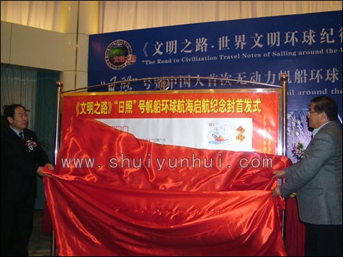 会上,国家体育总局水上运动管理中心主任韦迪、日照市副市长解世增为《文明之路》“日照”号帆船环球航海纪念封首发式揭牌。