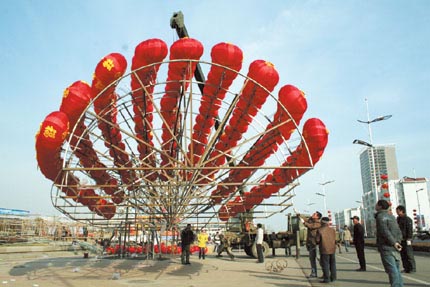 2008年元宵灯会今晚亮起来了,想饱眼福的,走,晚上一起赏灯去。2月13日,记者从日照市文化局了解到,2008年元宵灯会的大部分灯组于2月14日(农历正月初八)下午基本完工,当天晚上亮灯。今年灯会共有28个参展单位的彩灯灯组,从正月初八一直持续到正月十七。 在灯会安装现场,记者看到,今年的灯会不仅色彩艳丽、立体感强,而且神态生动,让人看后喜从心来。漫步广场,“硕果累累”、“喜庆花鼓”等一组组寓意美好的大型彩灯错落有致,逐一展现。 今年多数参展单位突出民族民俗节日文化这一主题,传统民俗内容展灯的比例比往年提高。今年展灯设计融入了海洋、龙、鼠、彩虹等内容,动静结合,节日气氛浓厚,体现了传统与现代的有机结合。 据日照市文化局相关负责人介绍,今年的灯会突出传统风俗特色,以传统风格灯(包括人物、动物、植物等各类造型)为主体,充分体现浓郁的传统节日气氛,避免门框式、展板式、灯箱式、喷绘式等程式化模式。据介绍,早在春节前,市区泰安路、北京路和海曲路的路灯杆悬挂灯笼的工作就已完成,各单位也在门前悬挂灯笼。民间文艺表演比赛贯穿春节和元宵节期间,活动时间在原来4天的基础上进一步延长,各区县正月初五前组织在村居和社区进行预赛,正月初五至初七分别组织进行初赛,正月十三至十六将在新市区人民广场进行决赛。 据了解,日照经济开发区、东港区也分别设展区,展出70余组花灯。正月十五元宵节当晚,还将增添有奖猜灯谜、焰火晚会、民间文艺表演等娱乐项目,为市民们欢度元宵助兴。