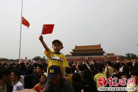 5月19日,民众在天安门广场高呼“中国加油”、“汶川挺住”等口号。环球时报记者张思扬摄