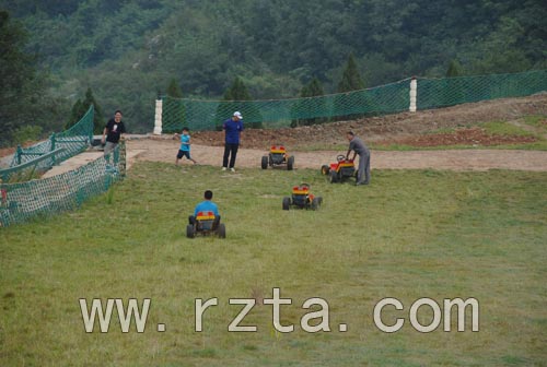 滑草场占据了崮上的最高位置,坐在滑车上,沿陡坡直冲而下,虽无飙车般风驰电掣的速度,不同与公路上的奔驰,草地考验着骑士们的驾驶技术,也让人体验了有惊无险的刺激。