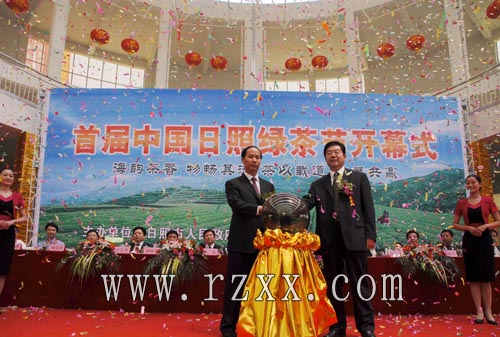 参加开幕式的领导和嘉宾有:中华全国供销总社监事会主任、中国茶叶流通协会会长刘环祥,中国茶叶研究所党委书记陈直,安徽农业大学校长宛晓春,中国对外贸易理事会副秘书长杨复强,农业部茶叶质量检验监督测试中心常务副主任刘新,吴觉农茶学思想研究会副会长于观亭,省供销社监事会主任王艺华,省经贸委副主任杨国良,省贸促会副会长连佳军,省农科院副院长逯岩,市委副书记、市长赵效为,市人大常委会副主任张玉佩,副市长万同,市政协副主席董淑波,日照军分区副司令员韩继亮。开幕式由副市长万同主持。