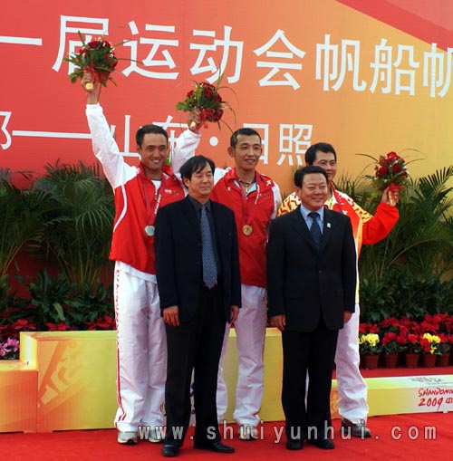 帆船男子芬兰人级金牌被山东队张鹏获得(中)