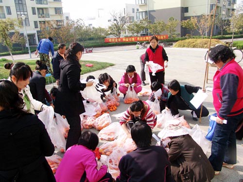 两个小时的时间,大家收获颇丰。看着自己的劳动成果,每一个人的脸上都洋溢着笑容。物业人员帮忙把劳动成果进行了汇总,然后进行了平均分配。
