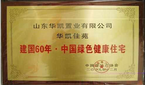 热烈祝贺华凯佳苑被授予“中国绿色健康住宅”殊荣(2009年12月31日)