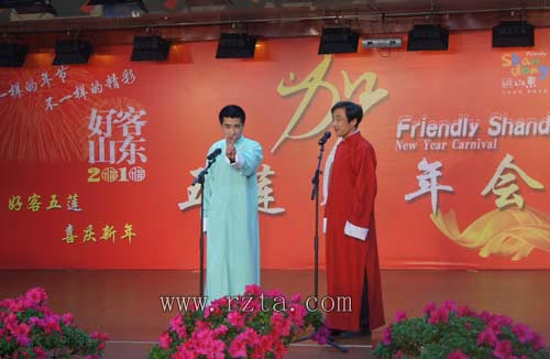 欢歌寄豪情,劲舞迎新春。2月1日晚,五莲宾馆会议室内春潮澎湃、歌舞飞扬。以“好客山东贺年会”为主题的2010年五莲贺年会新春文艺晚会浓情上演。省旅游局国内市场处王春生处长、好客山东贺年会工作检查组、市旅游局领导班子成员及各科室负责人、各区县旅游局局长及部分涉旅企业相责人与近千名观众共同观看了晚会。