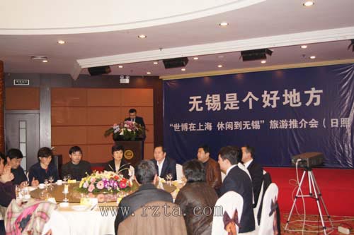 无锡市旅游局局长蒋瑞兴在会上致辞,他说,上海举办的世博会,既是城市盛会,也是旅游盛会。无锡市旅游局高度重视,充分利用无锡处于上海“两小时都市圈”的地理和旅游资源优势,提出了“世博在上海,休闲在无锡”的口号。紧紧围绕“无锡是个好地方”,全力打造旅游城市品牌。积极打造产品工程,推出“太湖蠡湖生态休闲之旅、佛教文化博览体验之旅、吴地文化发源地体验之旅、中国民族工商业文化体验之旅”等长三角世博主题体验之旅。启动了“世博在上海,休闲到无锡”旅游推广工程,并全面推进旅游公共服务体系对接上海服务世博工程,加大无锡旅游资源的宣传推广力度。