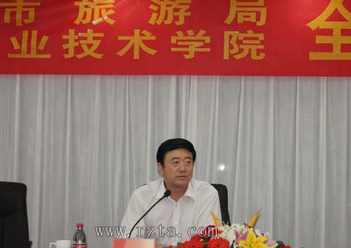 王立新局长在仪式上致辞,他说,近年来,日照市委、市政府高度重视旅游业发展,在城市性质定位中明确提出“东方桥头堡、临港工业和旅游业发达的阳光城市”,把旅游经济列为全市五大特色经济之一,重点发展。日照旅游的产业规模越来越庞大,产业地位不断提升,产业队伍不断壮大。日照职业技术学院以开门办学的理念,加强与社会合作,努力为社会培养有用人才。此次合作,充分体现了院校与政府间、院校与企业间的全方位、深层次、多渠道的全面合作关系,必将为大力培养旅游专业人才奠定良好基础,为促进旅游业的发展产生深远影响。他希望,各旅游企业要积极主动地与学院进行对接,进行更深层次的、系统的合作,通过“订单式培养协议”等形式培养、造就更多满足旅游需求的应用性人才。