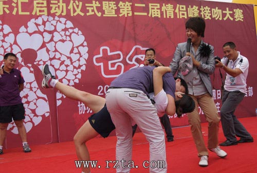 上午十点,伴随着激动人心的音乐,热吻比赛开始了,选手们纷纷施展各自的绝技,不断变换姿势,有的深情款款,有的激情四射,有的养精蓄锐等待决战时刻,他们的精彩表现赢得了观众的阵阵掌声。历过2个多小时的角逐,冠军终于决出。在万众瞩目中,荣获桂冠的选手执手相庆,相互拥抱,流下了激动幸福的泪水。