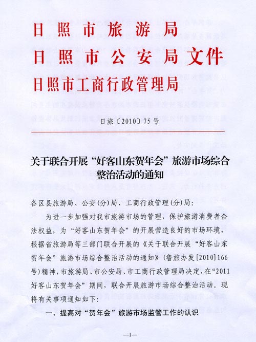 关于联合开展“好客山东贺年会”旅游市场综合整治活动的通知(2011年01月04日)