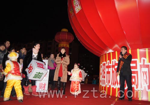 为配合做好全市元宵灯会工作和“好客山东、多彩日照”贺年会收尾工作,满足人们的精神文化需求和祈福求祉的愿望,增强元宵佳节欢乐祥和的氛围,日照市旅游局在第一展区市政府广场中心位置搭起了16米×16米的大舞台,扎起了直径12米的大灯笼,每天19:00开始“抢福”游戏,从2月15日起到18日止,共4晚5场,为好客山东贺年会增光添彩的同时,为市民和游客献上新年浓浓的祝福。