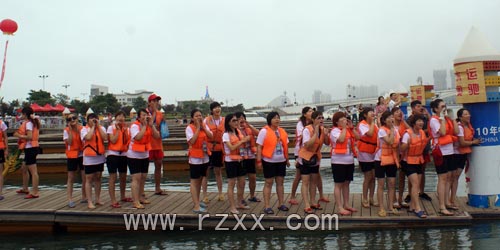 比赛还未开始,队员们就穿上橘红色的救生衣,做着赛前准备,个个显得精神抖擞。上午9点整,随着一声哨响,龙舟比赛拉开帷幕,鼓手挥棒击鼓,队员们双臂握桨,龙舟随即破浪前进,水面上搅起层层涟漪。船桨击水声,战鼓咚咚声,加上队员们激昂的加油呐喊声,混杂在一起,吸引了众多市民、游客的目光。看到精彩之处,大家情不自禁发出欢笑声和呼喊声。