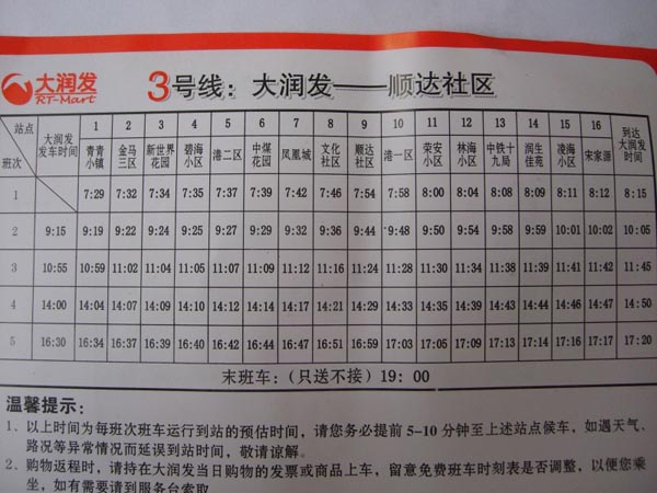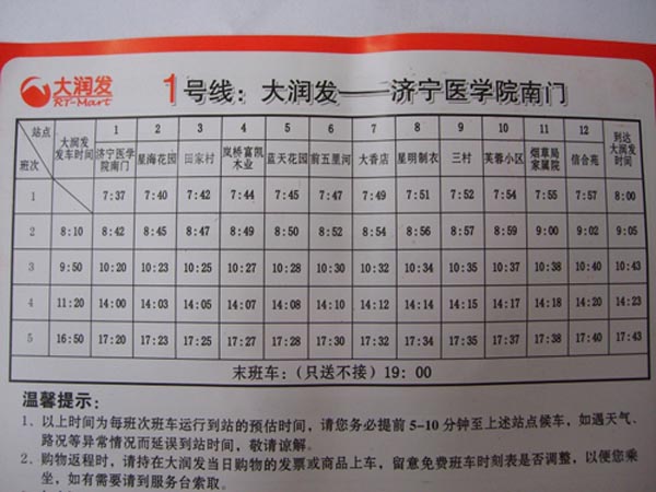 大润发班车路线图(2011年08月20日)