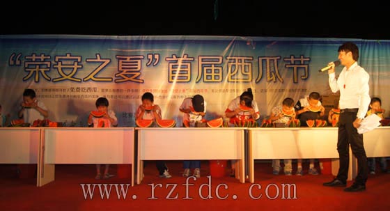 2012年6月9日晚,“荣安之夏”首届西瓜节在海曲路荣安广场售楼接待中心举行。本次活动不仅可以让参与者免费开怀畅享西瓜的美味,还可以让各位参与者通过参加趣味游戏赢取各种丰厚奖品。