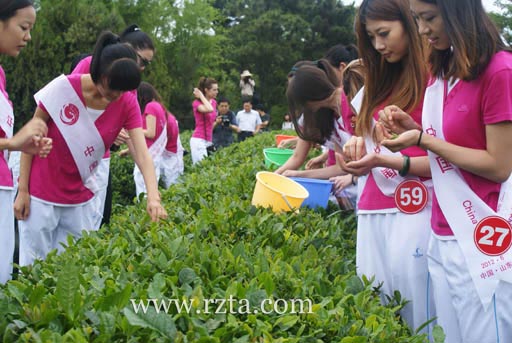 佳丽们亲自采茶、摘叶,对新鲜茶叶充满了好奇,并不时向专业人员询问采茶制茶的技术过程,吸收了解茶文化。离开茶地,选手们跟随御海湾工作人员来到了品茶坊,在这里,选手们亲自体验到了日照绿茶从烫水中氤氲的过程,并且品尝了由工作人员亲自斟上的绿茶。让她们体验到了采茶品茶的茶园文化。