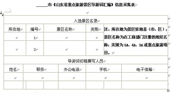 2、各县、区接到通知后,务于8月27日前将修订教材电子版(修订部分请用文字注明或颜色表明)和《山东省重点旅游景区导游词汇编》信息采集表电子版发至rzhypxk@126.com,联系人:刘虹,联系电话:8816285。