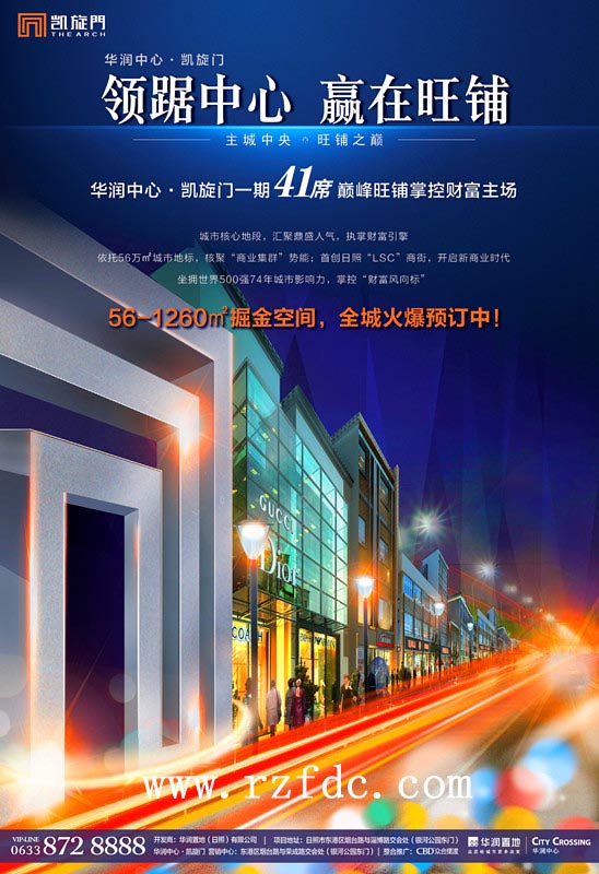 华润中心·凯旋门一期41席巅峰旺铺,56-1260㎡掘金空间,即买即升值,国际视野之上全面开启日照商业新时代!