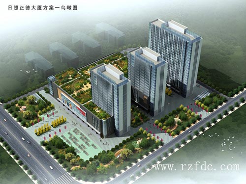 正德广场坐落在日照山海天旅游度假区太公二路与山海天路交会。总占地面积26680㎡,总建筑面积83312㎡,绿化率30%,容积率2.19,建筑密度32%。由1栋写字楼、2栋公寓及大型商业中心组成。