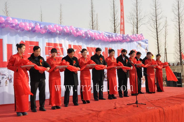(市旅游局局长王立新,县委副书记、县长杜江涛,县委常委、副县长迟玉国,县人大副主任岳兆玉,县政协副主席邬云海,县飞天旅游有限公司总经理庞遵超为滑雪场开业剪彩)