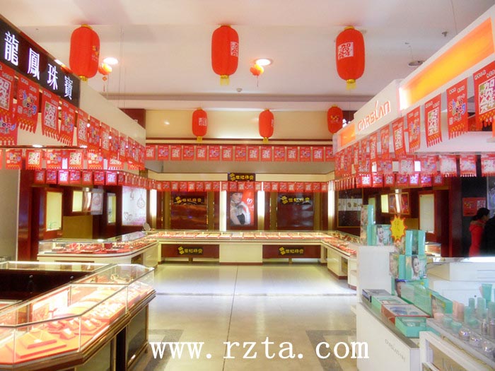 随着春节的临近,2013年“好客山东 勿忘在莒”贺年会也在如火如荼的进行中。贺年会期间莒县所有大型购物商场积极参与、精心设计了“好客山东贺年会”美陈,力争实现经济效益与社会效益的双丰收。今年的贺年会美陈设计新颖、构思巧妙。新世纪人民商场借助浓郁的莒地文化,将传统的年节文化注入年节消费与休闲旅游元素,融入浓厚的“好客山东”贺年会氛围,创意设计了贺年会宣传吊旗“过门笺”。