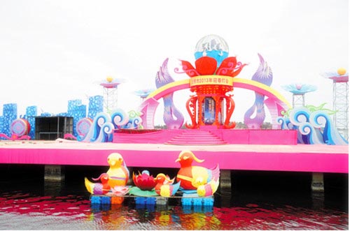 据了解,经过一个多月的制作安装,2013年迎春灯会布展工作进展顺利,三个大门、水上舞台灯组以及灯廊已于去年年底亮灯,目前70个灯组已经进入现场安装,60多个灯组已基本完成了现场安装。我市将于正月十二晚举行亮灯仪式,正月十二至二月十二灯展期间,还将组织民间文艺表演、焰火晚会以及灯谜、舞台文艺演出等相关活动。