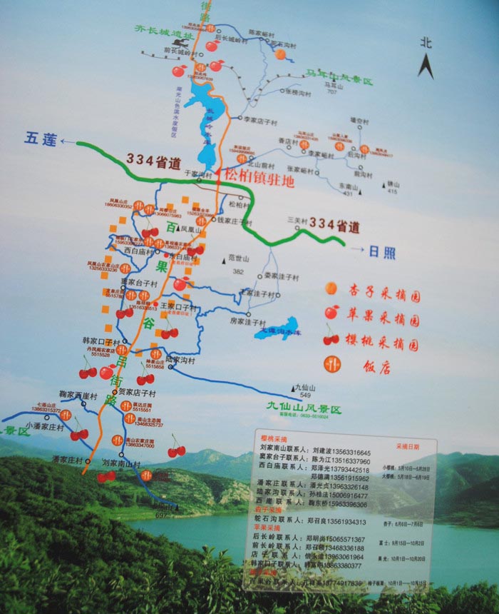5月19日上午,以“爱旅游•爱生活”和“休闲惠民•美丽中国”为主题的5.19中国旅游日宣传活动暨2013五莲县第三届樱桃文化节在松柏镇刘家南山民俗旅游村樱桃采摘区盛大开幕。日照市旅游局副局长赵志超,五莲县人民政府副县长赵荣芬等领导出席开幕式,五莲县县委宣传部副部长、县旅游和文体广电局局长单忠元主持开幕式。