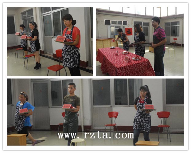 餐饮的托盘考核,分静托三分钟、障碍绕行和上菜报菜名。考生们个个精神抖擞,考风严谨,技能技巧点到为止,很有一派专业服务人员一丝不苟的工作态度此次的技能项目为客房服务考核。