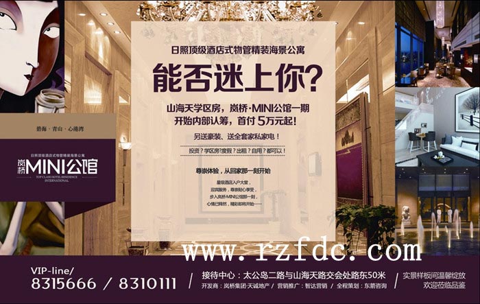 中国日照顶级酒店物管海景公寓,山海天学区房,岚桥﹒MINI公馆一期开始内部认筹,首付5万元起!另送豪装,送全套家私家电!