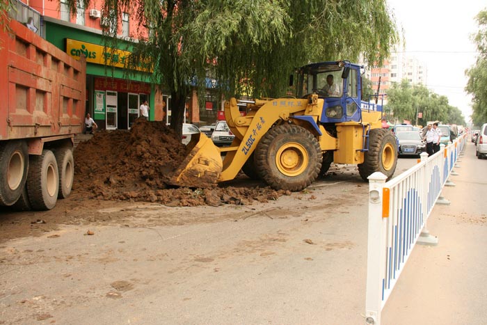 7月15日早晨,正阳路老文化宫西侧路边上出现了一大堆“从天而降”的土堆,估计有近20立方米,市环卫处立即派人赶赴现场进行处理。“估计是夜间渣土运输车偷偷作业时爆胎了,然后就把一车土倒在了路边。”保洁一公司经理说。由于土堆较大,市环卫处调用一台推土机和一台12吨运输车进行了处理,然后又进行了人工铲、洗作业。 “现在市区正在加强建筑垃圾管理,欢迎广大市民到市建筑垃圾管理办公室举报此类违规运输建筑垃圾的现象,举报电话8899290。”环卫执法中队长邱仪德说道。