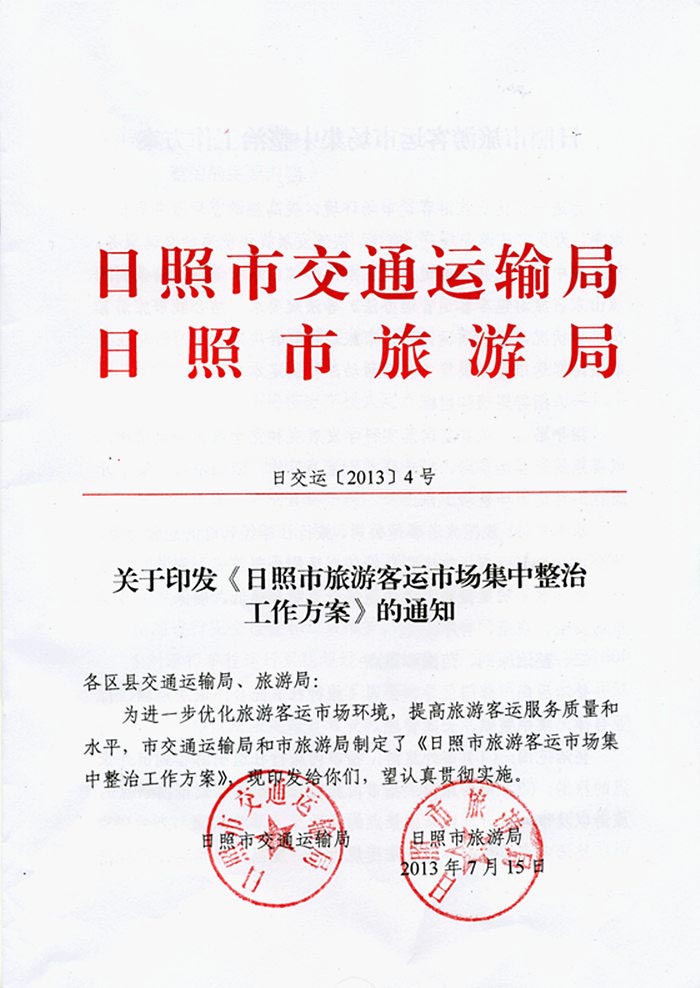关于印发《日照市客运市场集中整治工作方案》的通知(2013年07月22日)