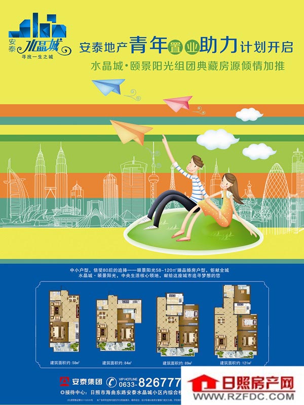安泰地产青年置业助力计划开启——安泰·水晶城颐景阳光组团,典藏房源倾情加推! 中小户型,倍受80后的追捧——安泰·水晶城颐景阳光58-120㎡臻品婚房户型,钜献全城。 安泰·水晶城颐景阳光,中央生活核心领跑,献给这座城市追寻梦想的您。 日照房产网为您带来安泰·水晶城颐景阳光组团贵宾热线:0633-8267777 8707666; 接待中心:日照市海曲东路安泰水晶城小区内综合楼