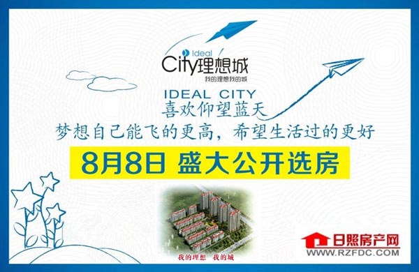 理想城——8月8日盛大公开选房!我的理想理想城! 理想城——喜欢仰望蓝天,梦想自己能飞的更高,希望生活过得更好!