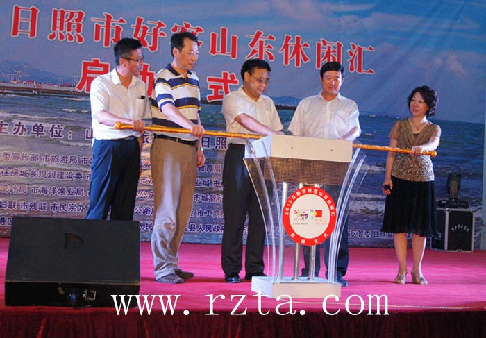 山东省旅游局国内旅游市场开发处处长王春生,日照市旅游局局长王立新, 山东省旅游局国内旅游市场开发处副处长司琰,山海天旅游度假区管委副主任王一冰出席启动仪式,仪式由日照市旅游局副局长赵志超主持。