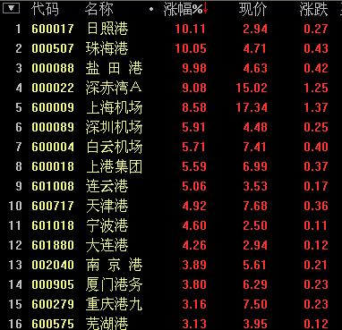 航运板块早盘拉升 日照港、珠海港等纷纷涨停(2013年09月11日)