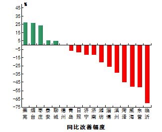 8月份,二氧化硫浓度最好的城市是烟台,为14μg/m3,最差的城市是淄博,为106μg/m3;同比改善幅度最大的城市是莱芜,为27.3%,同比恶化幅度最大的城市是临沂,为-70.0%。