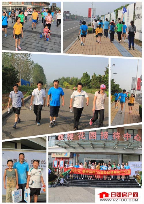 9月13日上午,山海天城建集团和大象房屋建设集团联合举行“为爱行走,健康相伴”十公里徒步行活动,集团董事长相丰、员工及员工家属参加了此次徒步活动。行走路线:教授花园三期——碧海路——太公一路——青岛路——山海路——北沿海路——碧海路——教授花园三期,全程共计10公里左右。历经一个半小时,行走队伍达到终点。在教授花园三期会所进行了抽奖活动和合影留念。