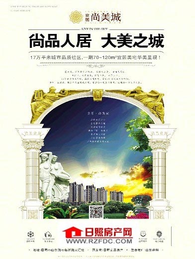 安居·尚美城——17万平米城市品质社区,一期70-120㎡宜居美宅华美呈现! 相关链接: 安居.尚美城 ,位于日照市市区山东路和临沂路交汇处,占地78亩,由上海建筑设计研究院有限公司负责规划方案编制。该小区由10幢17—26层高层建筑组成,系典型的Art-deco建筑风格,整个小区外立面简洁明快、庄重大气,小区布局合理,楼间距大,绿化景观丰富多样,让人耳目一新。小区建成后,将成为该地段的标志性小区。
