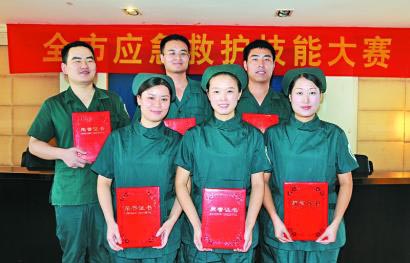 9月25-26日,在市卫生局、市总工会主办的“日照市应急救护技能大赛”上,市中医医院获得了团体第一名,个人护理组第一、二、三名,医疗组第二、三、四名的优异成绩。 这次应急救护技能大赛,是我市组织的规格最高的一次比赛,以锻炼全市应急救护队伍,提高卫生应急救护水平为目的,分个人和团体比赛。个人比赛按专业分医疗、护理两组,比赛项目包括应急救护理论考试和个人应急救护技能比赛两部分;团体比赛包括应急救护理论考试、团体技能展示两部分。共有来自全市卫生系统的15支代表队近70名选手参加。 为参加好这次比赛,市中医医院领导高度重视,护理部、医务科赛前积极准备,组织人员勤学苦练,不仅激发了全体医护人员学理论、练技能的热情,更是将练就的过硬本领运用到实际工作中。选出的6名参赛队员振奋精神,团结拼搏,敢于争先,最终取得了本次比赛的大满贯。