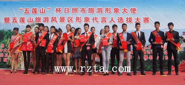 “五莲山”杯日照市旅游形象大使暨五莲山旅游风景区形象代言人选拔大赛由日照市旅游局、日照市广播电视台、五莲山旅游风景区管委会共同举办。大赛从今年五月启动以来,得到了社会各界的大力支持和积极响应,选手们踊跃报名,共有一百多名选手比赛参加。此次决赛46位选手经过激烈角逐,共评出男女组冠、亚、季军,“十佳旅游形象代言人”、 “最佳上镜奖”、“最佳才艺奖”、“最佳气质奖”、“最佳潜力奖”、“最佳活力奖”、“优秀选手奖”等奖项。经过3个环节的激烈PK,37号选手王立章和28号安奕诺脱颖而出,分别获得男女组旅游形象大使冠军。
