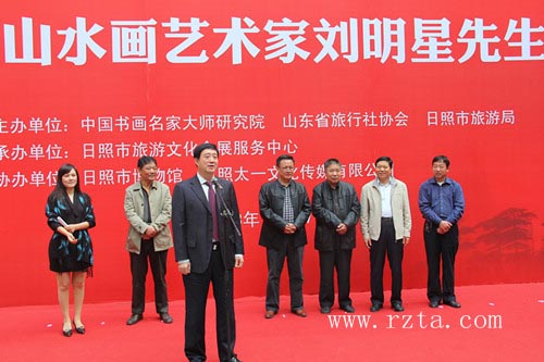 “好客山东休闲汇”中国魅力中国艺术行之中国著名书画家刘明星画展今天上午在日照市博物馆举行。日照市旅游局局长王立新,山东省旅行社协会及中国书画名家大师研究院相关领导,日照市著名书法大师刘玉岭先生参加了开幕式并讲话。