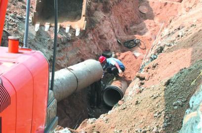 日照开发区刘石路拓宽改造 该路段输水管道迁改(2013年10月21日)