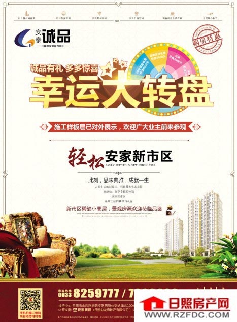 安泰诚品,“诚品有礼 多多惊喜”幸运大转盘。 安泰诚品,新市区稀缺小高层,景观房源施工样板层已对外展示,欢迎广大业主莅临品鉴。更有幸运大转盘抽奖活动,诚品有礼,多多惊喜!